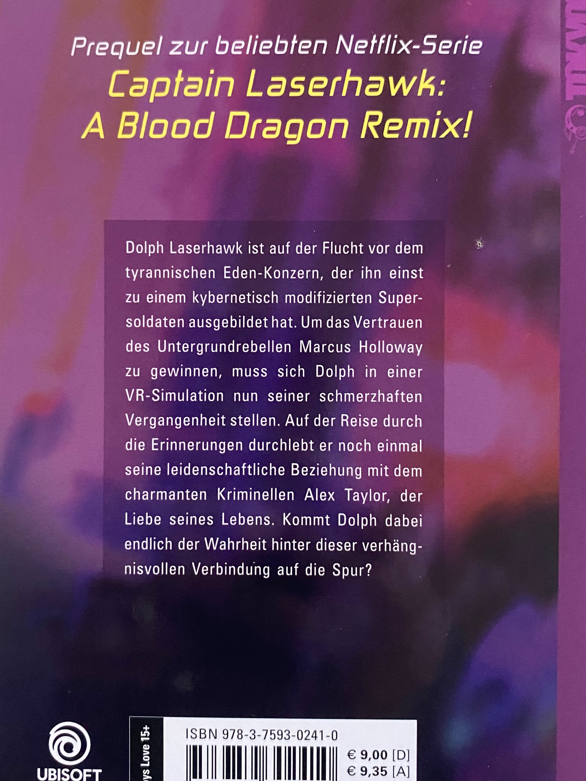 Beschreibung: Dolph Laserhawk ist auf der Flucht vor dem tyrannischen Eden-Konzern, der ihn einst zu einem kybernetisch modifizierten Supersoldaten ausgebildet hat. Um das Vertrauen des Untergrundrebellen Marcus Holloway zu gewinnen, muss sich Dolph in einer VR-Simulation nun seiner schmerzhaften Vergangenheit stellen. Auf der Reise durch die Erinnerungen durchlebt er noch einmal seine leidenschaftliche Beziehung mit dem charmanten Kriminellen Alex Taylor, der Liebe seines Lebens. Kommt Dolph dabei endlich der Wahrheit hinter dieser verhängnisvollen Verbindung auf die Spur? Prequel zur beliebten Netflix-Serie "Captain Laserhawk: A Blood Dragon Remix", in der Ubisoft-Charaktere aus verschiedensten Videospielen aufeinandertreffen!