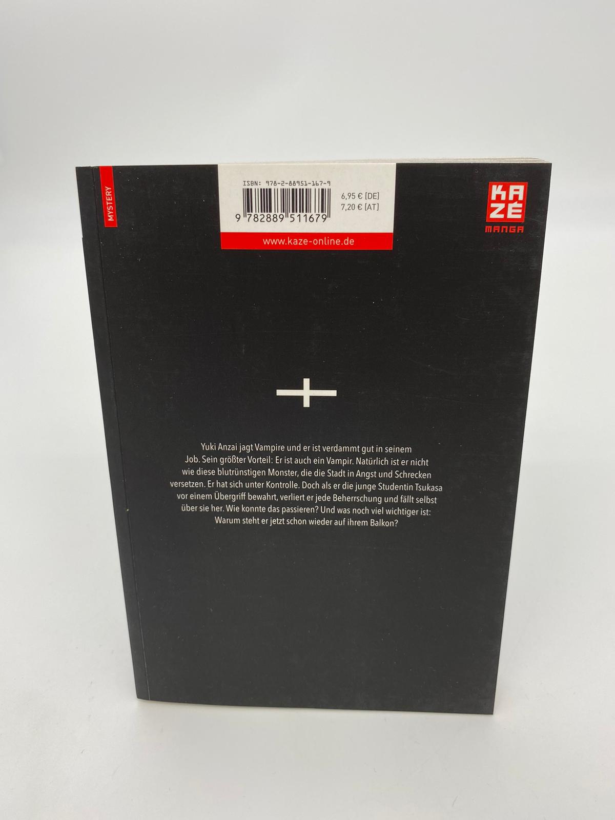 Beschreibung: Yuki Anzai jagt Vampire und er ist verdammt gut in seinem Job. Sein größter Vorteil: Er ist auch ein Vampir. Natürlich ist er nicht wie diese blutrünstigen Monster, die die Stadt in Angst und Schrecken versetzen. Er hat sich unter Kontrolle. Doch als er die junge Studentin Tsukasa vor einem Übergriff bewahrt, verliert er jede Beherrschung und fällt selbst über sie her. Wie konnte das passieren? Und was noch viel wichtiger ist: Warum steht er jetzt schon wieder auf ihrem Balkon?