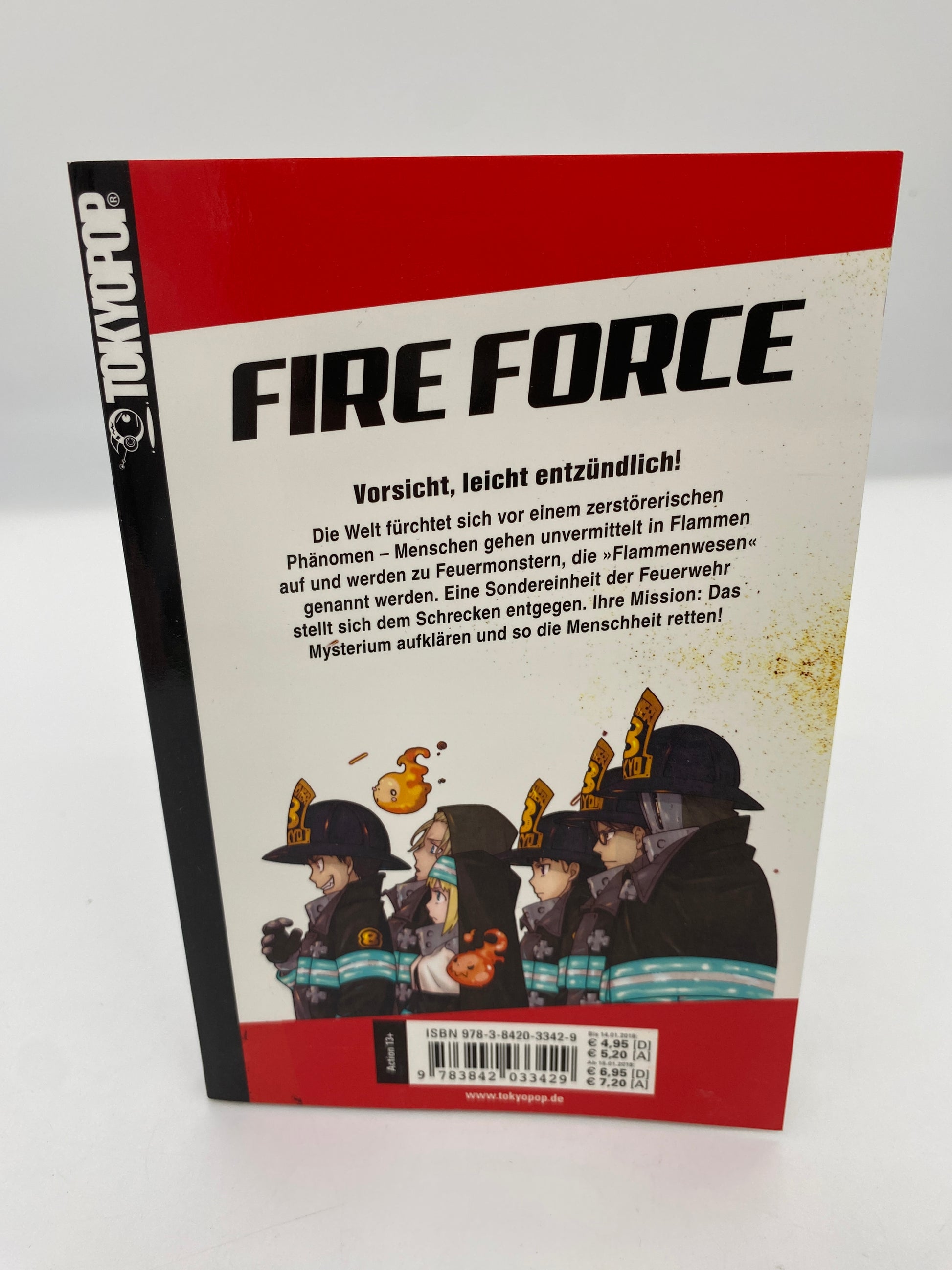 Beschreibung: Shinra Kusakabe ist neu bei der achten Sondereinheit der Feuerwehr, die gegen ein seltsames Phänomen kämpft, bei dem Menschen unvermittelt in Flammen aufgehen und zu Flammenwesen werden. Shinra, der seine Familie bei einem Brand vor zwölf Jahren verlor, setzt alles daran, ein Held zu werden, um andere beschützen zu können. Bereits sein erster Einsatz zeigt ihm, was es heißt, diesen Job zu machen!