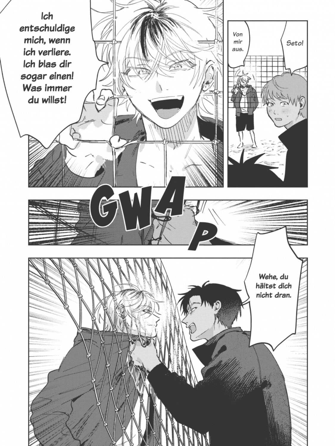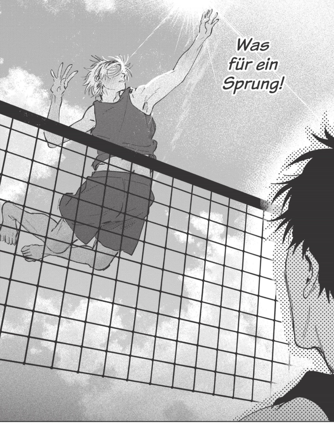 Beschreibung: Seto ist in seinem ersten Jahr an der Universität und bereits das Ass im Beachvolleyballclub. Seine Selbstdisziplin und Strenge haben ihm zu diesem Titel verholfen. Als er jedoch das neue Mitglied Umimoto trifft, regt ihn seine schlampige Art so sehr auf, dass er ihn mit einem Match in die Schranken weisen möchte. Seto ist sich anfangs seines Sieges sicher, denn aus Umimotos weißer Haut schließt er, dass er wohl nie trainiert. Doch während des Spiels erkennt er dessen Agilität und Anmut, die ihn sofort in ihren Bann ziehen…