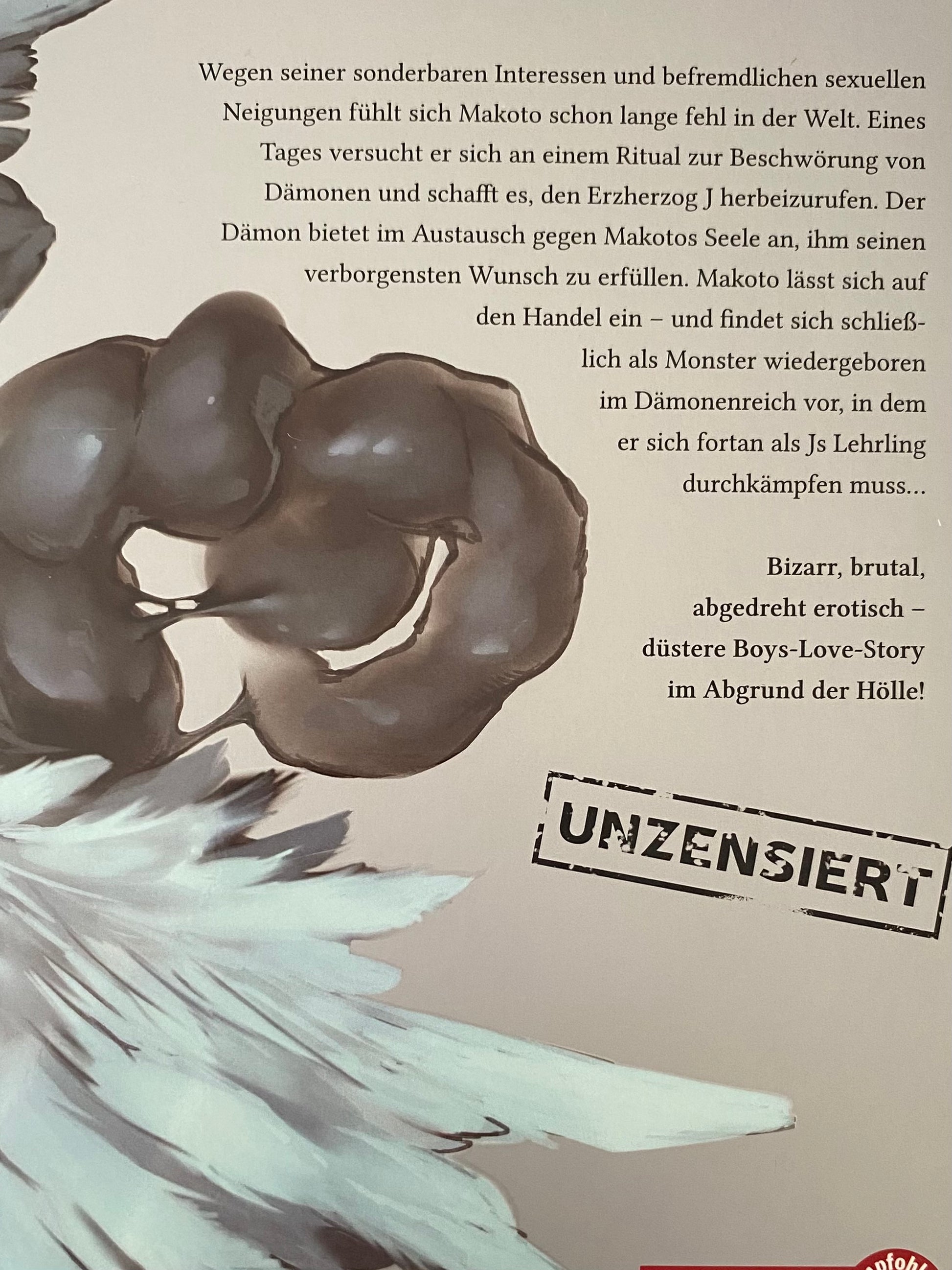 Beschreibung: Wegen seiner sonderbaren Interessen und befremdlichen sexuellen Neigungen fühlt sich Makoto schon lange fehl in der Welt. Eines Tages versucht er sich an einem Ritual zur Beschwörung von Dämonen und schafft es, den Erzherzog J herbeizurufen. Der Dämon bietet im Austausch gegen Makotos Seele an, ihm seinen verborgensten Wunsch zu erfüllen. Makoto lässt sich auf den Handel ein – und findet sich schließlich als Monster wiedergeboren im Dämonenreich vor, in dem er sich fortan als Js Lehrling durchkämpfen muss…